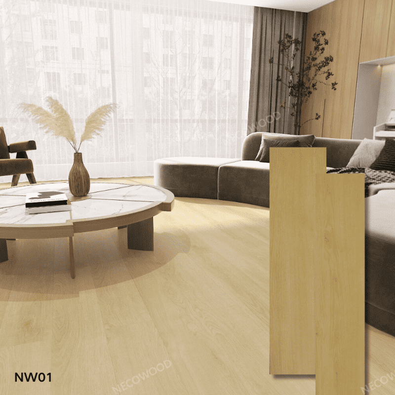 Semblable à WPC, le revêtement de sol SPC NECOWOOD peut être directement suspendu et installé sur la plupart des étages sans colle ni ongles, ce qui rend la construction rapide et pratique. Il a une excellente résistance à l'eau, à l'humidité et aux taches, ce qui le rend très adapté aux zones à fort trafic telles que les maisons, les bureaux et les espaces commerciaux.