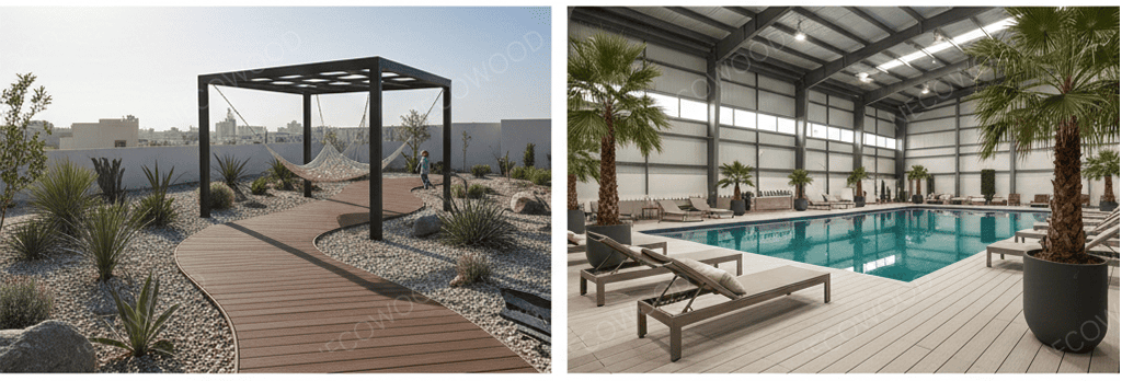 Dans le secteur résidentiel de luxe du Koweït, les espaces de vie extérieurs sont une extension de la maison. À mesure que les températures montent en flèche, les propriétaires et les entrepreneurs abandonnent le bois traditionnel pour se tourner vers le bois.terrasse composite, alternatives au bois pour planches de terrasse, etplanches de terrasse écologiques.